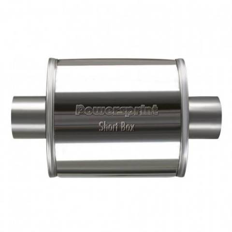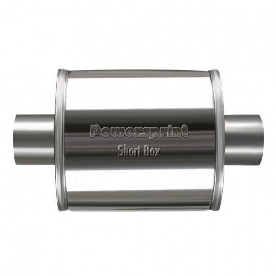 Le silencieux Short Box de Powersprint en acier inoxydable convient comme pré-silencieux, silencieux central ou silencieux arrière.